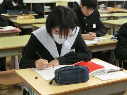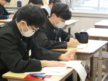 明日の公立高校一般入試に備え、最後の追い込みです。私立高校や専修学校に合格している生徒たちも同じ気持ちで取り組み、仲間にエールを送っているようです。