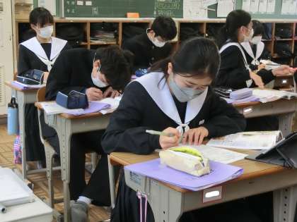 2年1組の社会・歴史分野の授業の様子です。