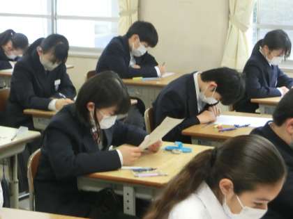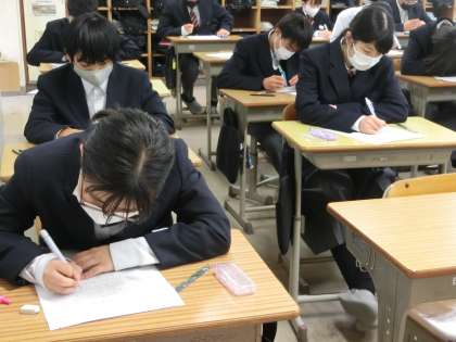 2/21 1-5 テストから学ぶこと 2 公開日 2024/02/21 更新日 2024/02/21 各学年から 1年5組の数学の授業の様子です。 単元のまとめのテストに取り組んでいました。授業中には分かったと思っていても、テストになると解けない問題が出てくることもあります。テストを通して、授業へ臨む姿勢や日頃の学習の様子も振り返り、今後に生かしてほしいと思います。