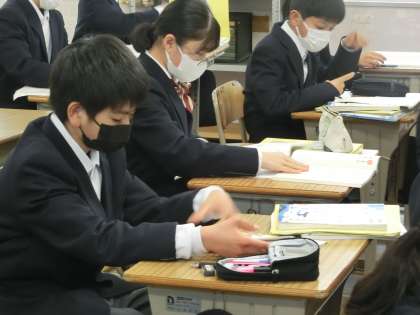 2/21 1-1 楽しみながら学ぶ 3 公開日 2024/02/21 更新日 2024/02/21 各学年から 1年1組の国語の授業の様子です。 ことばのきまりの学習で、「単語の分類(自立語・付属語)」について学んでいました。ユーモアたっぷりの教科担任の進行に、楽しみながら学んでいる様子が伝わってきました。