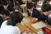 「表現集の言葉を使って鑑賞文を書き、美術作品のよさを伝えよう」というジャンプ課題に取り組んでいました。単元で学習したことをアウトプットしていく活動です。