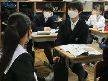 地層から読み取れることは何かを考え、映像で確認していきます。自分の意見を仲間に伝える際に身振り手振りで一生懸命になっている様子が印象的でした。