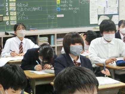 1年3組の英語の授業の様子です。 過去進行形の文法について学んでいました。