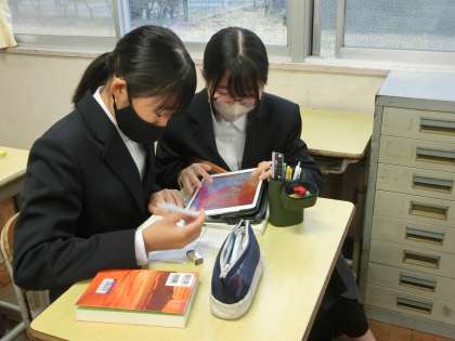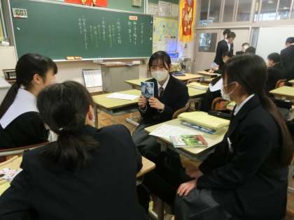 ビブリオトークに向けての準備に取り組んでいました。発表原稿をもとに、パフォーマンスや時間配分、内容などについて、発表練習を通して仲間からアドバイスをもらっていきます。本番でレベルアップした発表・パフォーマンスに期待したいと思います。