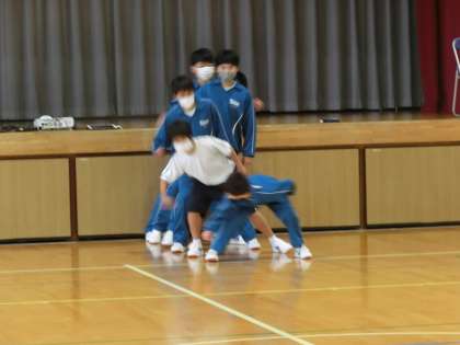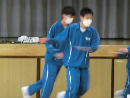 ダンスの発表会が行われていました。使用する曲は共通ですが、振り付けやフォーメーションはグループのオリジナル。練習の成果をしっかり発揮しようと、どのグループも笑顔で発表していた様子が印象的でした。また、見る側の生徒たちも手拍子などを行い、発表を盛り上げていました。