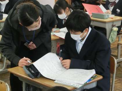 過去進行形の文法について学んでいました。この時間にしっかり学ぼうとする様子が、表情から伝わってきます。