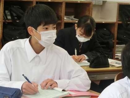 2/22 1-1 学ぼうとする意識 3 公開日 2024/02/22 更新日 2024/02/22 各学年から 1年1組の英語の授業の様子です。 過去進行形の文法について学んでいました。この時間にしっかり学ぼうとする様子が、表情から伝わってきます。