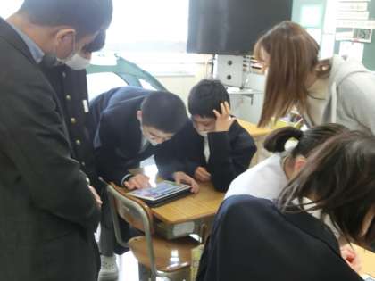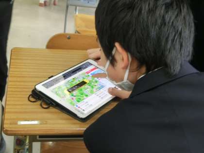 学習版「桃太郎電鉄」を使っての学習です。実存する駅名などから日本の地域を学んだり、収益率の計算や物件購入の判断の材料を相談したりしていきます。「学ぶゲーム」に生徒も熱中していました。