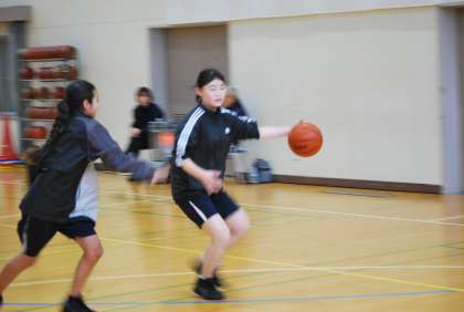 写真は、3連休初日(2/23)のバスケット部の活動の様子です。