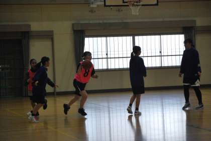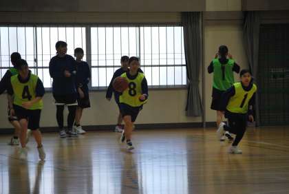 写真は、3連休2日目(2/24)のバスケット部の活動の様子です。