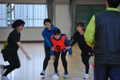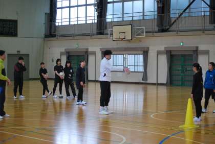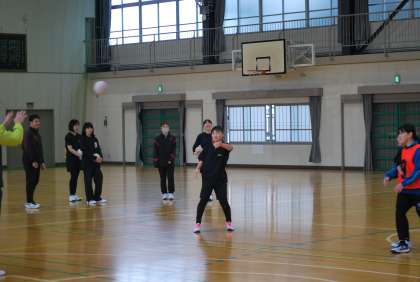 写真は、3連休最終日(2/25)の女子ハンド部の活動の様子です。地域指導者の方々に熱心にご指導をいただきました。