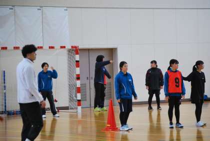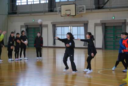 写真は、3連休最終日(2/25)の女子ハンド部の活動の様子です。地域指導者の方々に熱心にご指導をいただきました。
