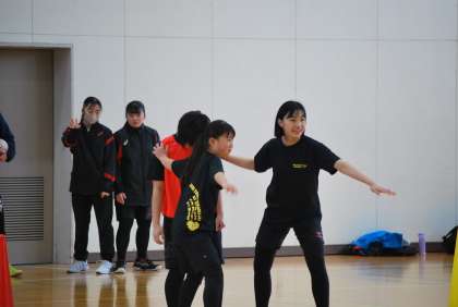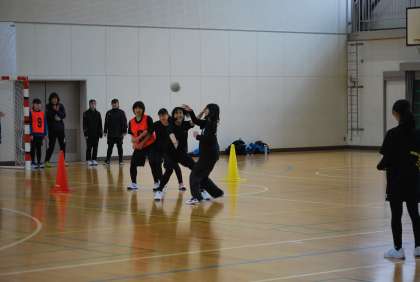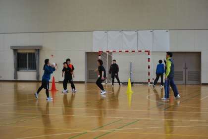写真は、3連休最終日(2/25)の女子ハンド部の活動の様子です。地域指導者の方々に熱心にご指導をいただきました。