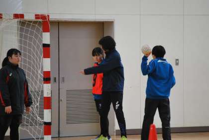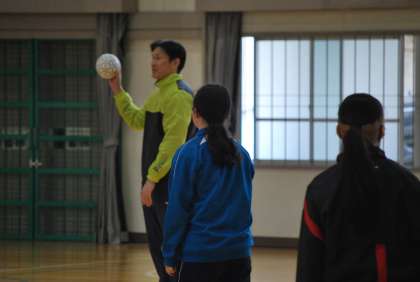 写真は、3連休最終日(2/25)の女子ハンド部の活動の様子です。地域指導者の方々に熱心にご指導をいただきました。