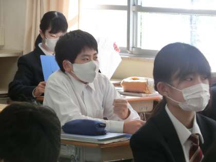 2/26 1-4 テスト後の復習も忘れずに… 2 公開日 2024/02/26 更新日 2024/02/26 各学年から 1年4組の数学の授業の様子です。 先日行われた単元テストの返却と解説が行われていました。今回のテストは図形問題が中心で、作図のを確認する内容もありました。理解が不十分であったところは、しっかりと復習しておいてほしいと思います。