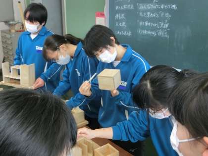 木製品の最後の仕上げニス塗りに取りかかっていました。中には仕上がりを最高のものにしようと、最後の最後までヤスリで磨き上げている生徒もいました。