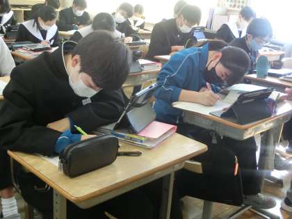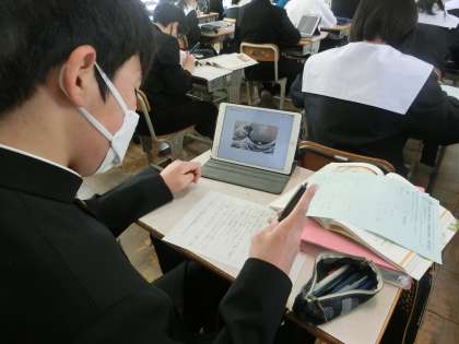 「表現集の言葉を使って鑑賞文を書き、美術作品のよさを伝えよう」というジャンプ課題に取り組んでいました。単元で学習したことをアウトプットしていく活動です。