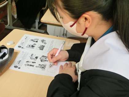 スピーキング対応問題に取り組んでいました。最後の授業まで、しっかりと仲間とコミュニケーションが取れています。
