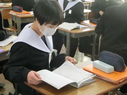 学習した内容の復習で、仲間に何とか伝えようと必死の生徒がいました。一方で、しっかり説明ができるようにと教科書やノートを読み込んでいる生徒もいました。