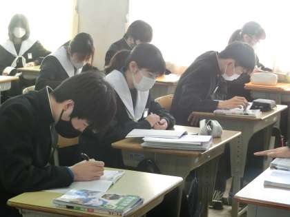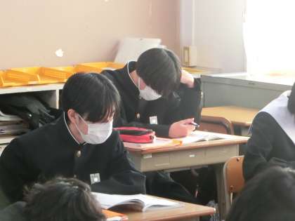 学習した内容の復習で、仲間に何とか伝えようと必死の生徒がいました。一方で、しっかり説明ができるようにと教科書やノートを読み込んでいる生徒もいました。