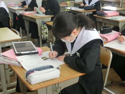 「表現集の言葉を使って鑑賞文を書き、美術作品のよさを伝えよう」というジャンプ課題に取り組んでいました。単元で学習したことをアウトプットしていく活動です。最初は悩んでいましたが、コツをつかんできたようです。