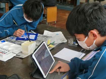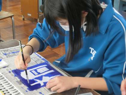 「シンボルネーム」の作品づくりです。名前の一文字を使い、自身を象徴する作品に仕上げていきます。デザインが確定し、いよいよ色付けが始まりました。タブレットで作成したイメージ画にどれだけ近づけるか。色の調整も慎重に行っていました。