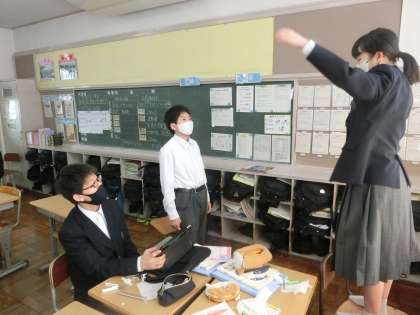 「データの活用」の単元の学習に入り、今回はまずデータ収集です。1辺1センチの正方形の紙が床に落ちるまでの時間を計測していきます。20回以上も試していたグループもありました。