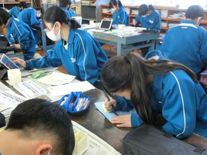 2/28 1-1 イメージに近づけようと… 3 公開日 2024/02/28 更新日 2024/02/28 各学年から 1年1組の美術の授業の様子です。 「シンボルネーム」の作品づくりです。名前の一文字を使い、自身を象徴する作品に仕上げていきます。デザインが確定し、いよいよ色付けが始まりました。タブレットで作成したイメージ画にどれだけ近づけるか。色の調整も慎重に行っていました。