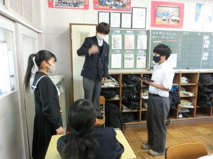 「データの活用」の単元の学習に入り、今回はまずデータ収集です。小さく切った紙が床に落ちるまでの時間を計測していきます。20回以上も試していたグループもありました。