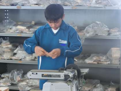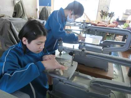 学級の活動で使用するグッズを手作りしています。電気工具も安全に気をつけながら、どんどん使用しています。そして、仲間の作業の様子を心配そうに見ているのには訳があります。身につけた技能やトラブルへの対応を仲間に伝えるためです。「協力」の本当の姿を見たような気がしました。