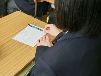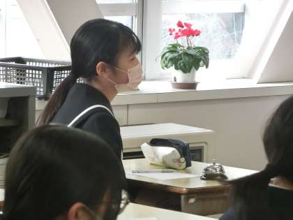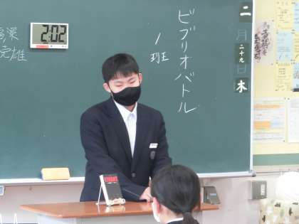 これまで準備を進めてきたビブリオトーク。グループ内で予選会を開き、代表者が全体の発表会に登場します。5つのグループが発表し、中にはテレビでもドラマ化された原作本の紹介をし、「書籍とテレビの違いを比べてみるのもおもしろい」という興味深い発表もありました。