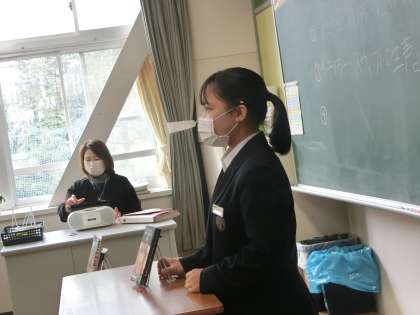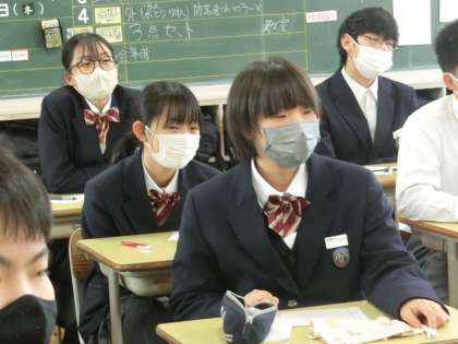 これまで準備を進めてきたビブリオトーク。グループ内で予選会を開き、代表者が全体の発表会に登場します。5つのグループが発表し、中にはテレビでもドラマ化された原作本の紹介をし、「書籍とテレビの違いを比べてみるのもおもしろい」という興味深い発表もありました。