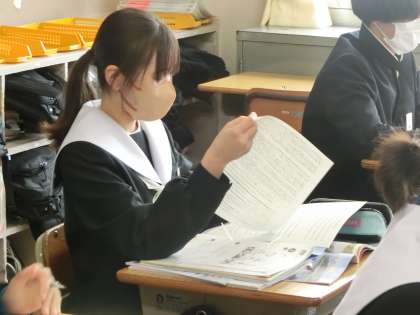 「小さなきっかけで人生が変わるお話」と題した複数の英文の話を読み解いていきます。読めない単語や意味の分からない単語も多く含まれていますが、タイトルに魅力を感じ、生徒たちは必死に読み込んでいました。