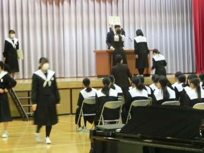 本日の1,2時間目に行われた3年生のみの卒業式練習です。