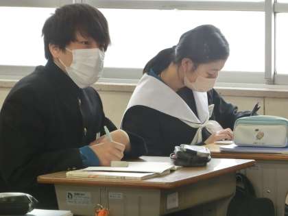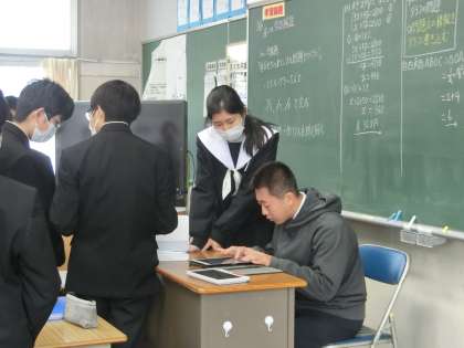 一年間の学習のまとめに入っていました。今回は学習診断テストに出題された問題の解説が改めて行われ、早くも入試対策といったところです。後半は、次回から始まる「オリジナル問題の作成」に向けて、グループと計画を立てていました。