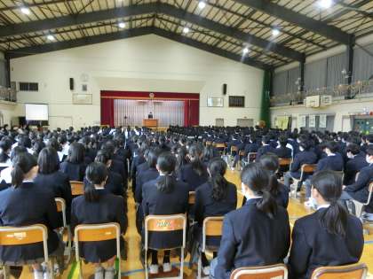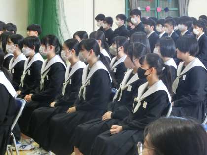 写真は、3月1日(金)の3限に行われた卒業式予行練習の様子です。