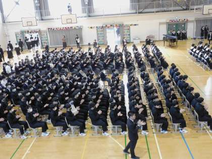 写真は、3月1日(金)の3限に行われた卒業式予行練習の様子です。