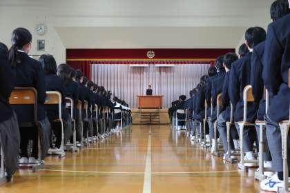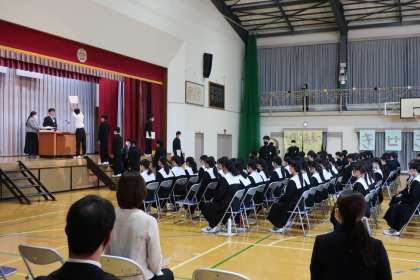 写真は、3月1日(金)の3限に行われた卒業式予行練習の様子です。