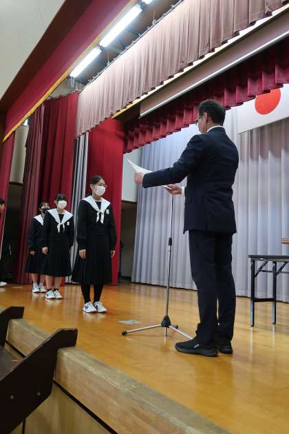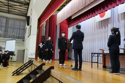 「高中賞」とは、日頃の行いがよく、他の模範となる生徒を表彰するもので、生徒同士が互いにがんばりを称賛する「高岡賞」を数多く受賞したり、教職員などからの推薦によって受賞生徒が決定されます。今回は3年生のみの表彰でしたが、30名が表彰されました。