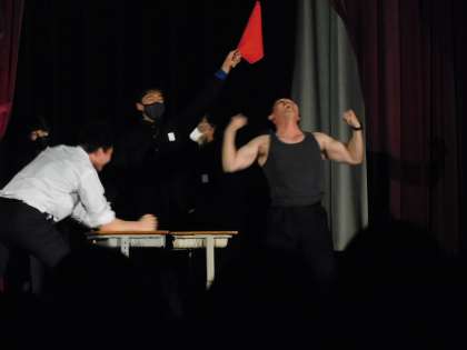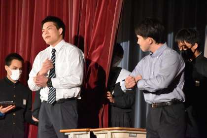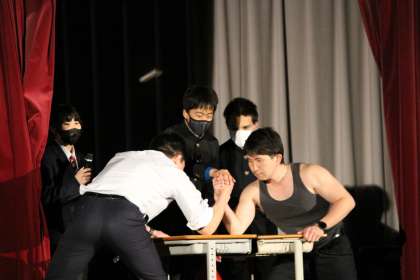 腕相撲対決です。応援の声で、会場は熱気に包まれていました。