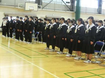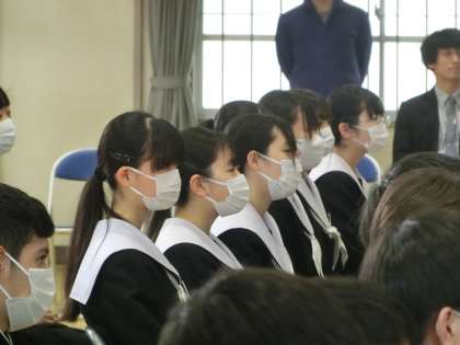 本日の2限・後半に行われた卒業式全校練習の様子です。