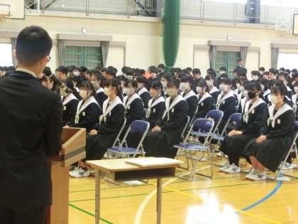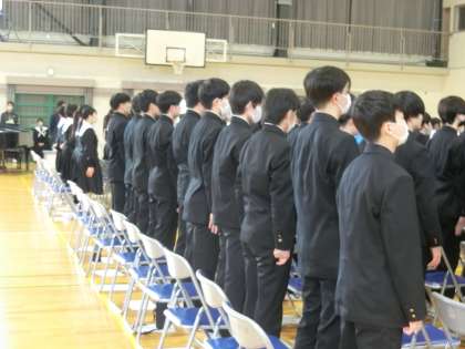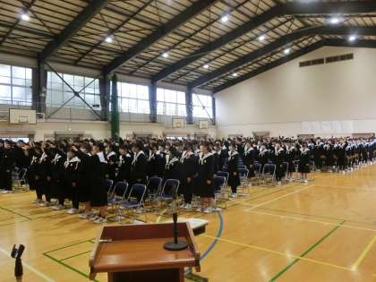 本日の2限・後半に行われた卒業式全校練習の様子です。