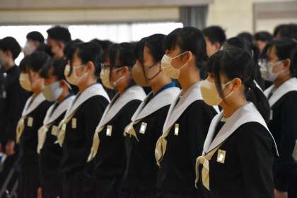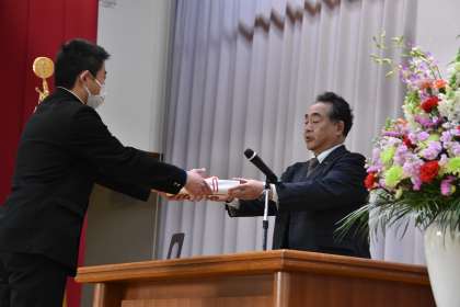 会長様を含め3名の役員の皆様にお越しいただき、入会式と総会が行われました。3年生172名の加入で、高岡中学校の同窓会員数は2万人を超えました。