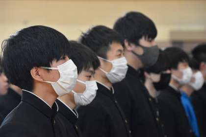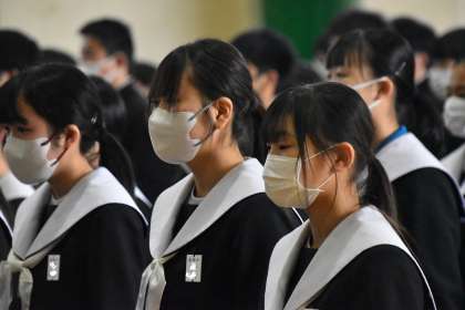 本日の2限・後半に行われた卒業式全校練習の様子です。