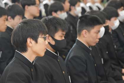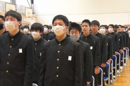 本日の2限・後半に行われた卒業式全校練習の様子です。