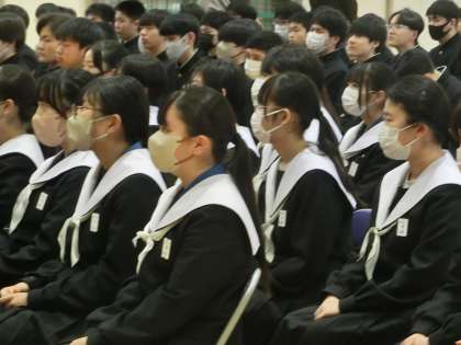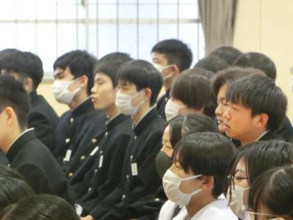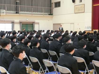 式の中で話をされる方の代役を3年部の先生たちが務め、3年生にコメントを述べていきます。思い出話や将来に向けての話など、内容もバラエティに富んでいました。