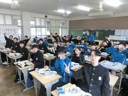 3/5 3-4 最後の給食 公開日 2024/03/05 更新日 2024/03/05 各学年から 義務教育9年間、最もお世話になったのが給食。 「給食」と名の付くものは、これから先の長い人生でも今回が最後になる人がほとんどだと思います。 写真は3年4組の様子です。 最後まで、ちゃんと笑顔で応えてくれました。