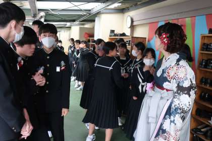 予定時刻より若干遅れての入場になりましたが、入場前の3年生はとてもリラックスした様子でした。一方、在校生は緊張した様子で、会場の雰囲気づくりに努めてくれていました。