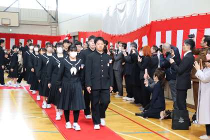卒業生の退場です。在校生を含め、参列された方々より惜しみない拍手が送られました。