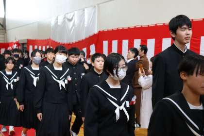 卒業生の退場です。在校生を含め、参列された方々より惜しみない拍手が送られました。